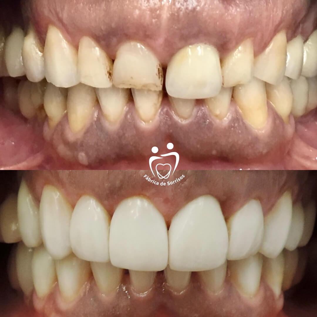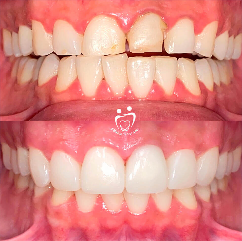 Seus dentes quebravam, precisavam de “canal” e implantes. As facetas de resina direta feitas pelo dr Rodrigo Carvalho reequilibraram sua mordida, sua oclusão e devolveram saúde e beleza ao seu sorriso!